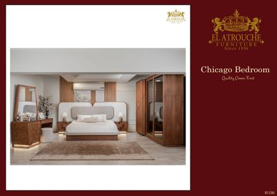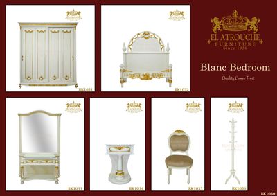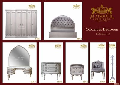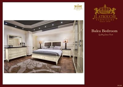Almond Bedroom bed back is upholstery & capitonnΓ©, and the dressing table ,chiffonire ,two commodes top up with glass. Studded with LED light that give the Almond Bedroom his warm appearance.