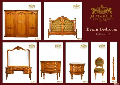 Benin Bedroom bed is capitonnΓ© back and the dressing table, chiffonire ,two commodes top up with glass.