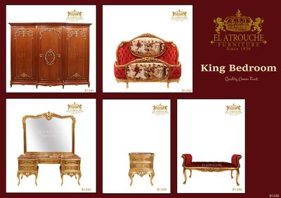 king Bedroom bed is capitonné back and the dressing table, chiffonire ,two commodes top up with marble .